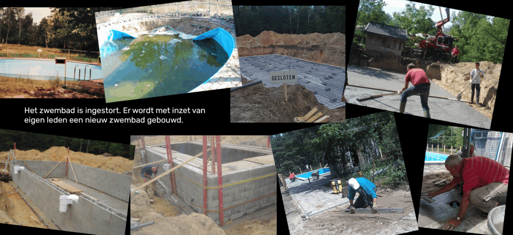 Met inzet van allen is daar een zwembad van wedstrijdmaten en diverse bijgebouwtjes opgebouwd.