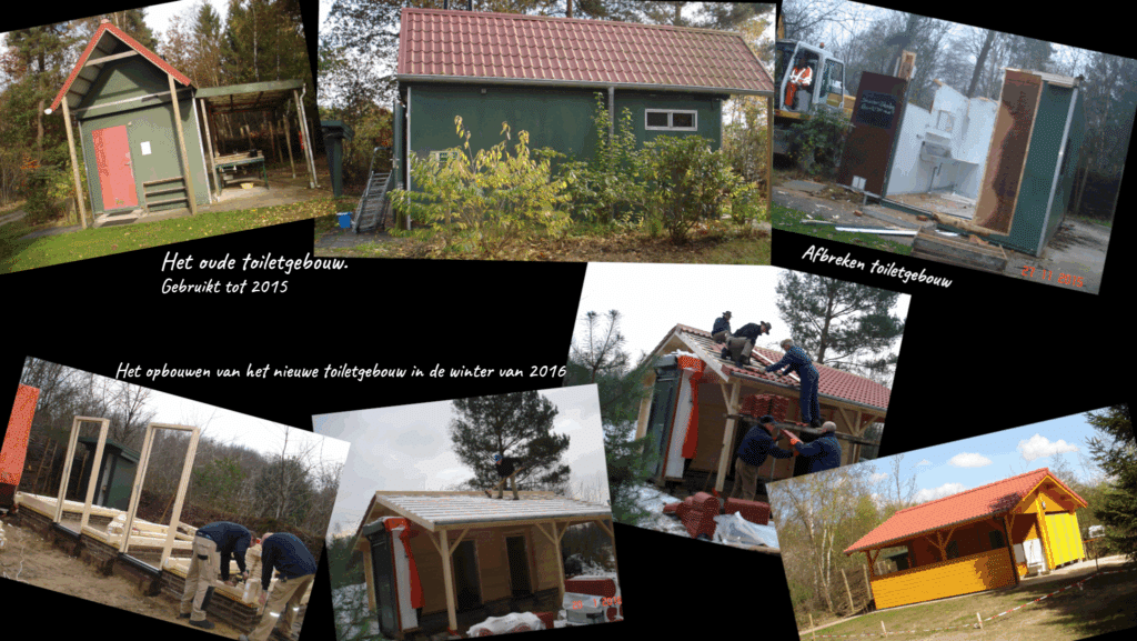 Nadat het ‘Grote Veld’ in gebruik raakte met kampeerplaatsen, ontstond de vraag naar nabije toiletgelegenheid. Bij het hoofdbestuur bestond de nodige scepsis over deze investering. Door de eis van korte afstand tot een toiletgebouw, als voorwaarde voor een kampeervergunning, is het akkoord bevonden. Het hoofdbestuur heeft toen in 2004 ergens een tweedehands toiletgebouw gekocht. Deze is met veel inzet van leden geplaatst op de plek van het huidige Huuske, met daarachter de afwasgelegenheid. In 2016 is daar het Huuske voor in de plaats gekomen ivm toenemend verval van het oude gebouwtje. Weer met veel eigen inzet.